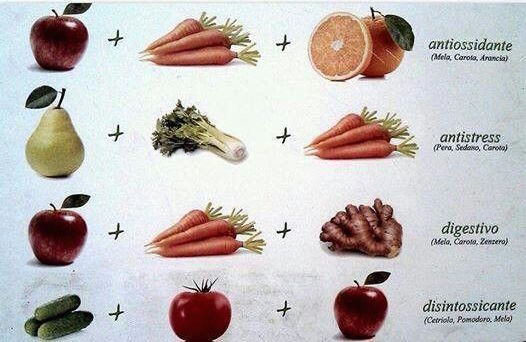 Di seguito quindi vi propongo una serie di combinazioni a cui è legata un’azione ben precisa poi voi potete sbizzarrivi in base alle vostre preferenze in termini di frutta e verdura. Due appunti prima delle ricette: