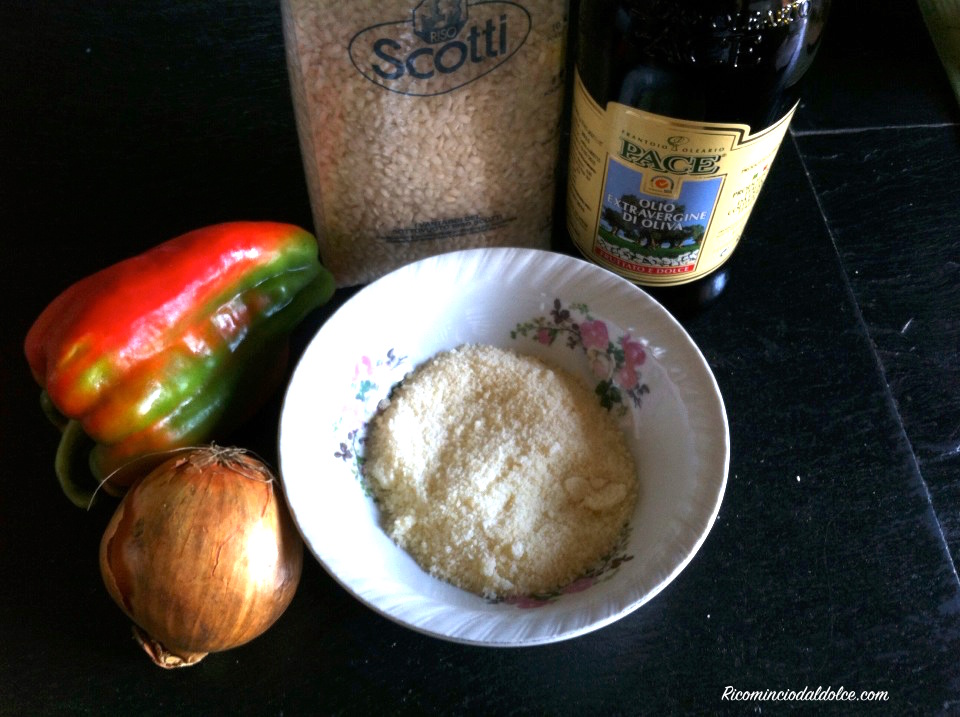 Rossi, gialli o verdi i peperoni sono un ortaggio tipico dell’estate che non può assolutamente mancare sulle nostre tavole. Dobbiamo ringraziare Cristoforo Colombo se oggi è coltivato anche in Italia, perché il peperone è originario dell’America latina e raggiunse la Spagna nel 1500, per poi arrivare in Italia e nel resto dell’europa. In particolare l’Ungheria deve molto a questo ortaggio che è diventato il simbolo del paese, essendo questo ultimo il principale produttore al mondo di Paprika. Esistono molte tipologie di peperoni: dolce e piccante, piccoli e grandi, di forma allungata, tronca o quadrangolare. Così come esistono numerosi modi di cucinare i peperoni: crudi, cotti, ripieni, nell’insalata, sott’olio, sotto aceto, secchi ecc.. ecc…ecc.. Oggi ve li propongo come ingrediente di un gustosissimo risotto, che data la stagione estiva ormai avviata ho cercato di alleggerire non usando il burro, ma soltanto olio evo.