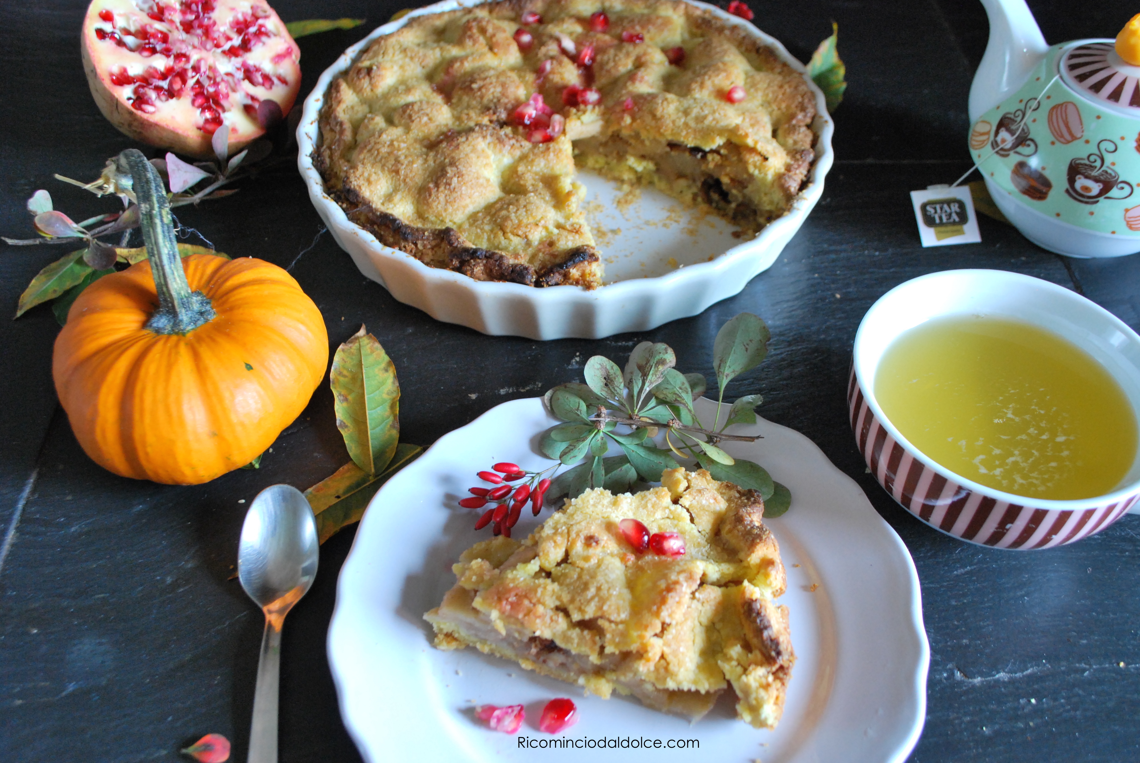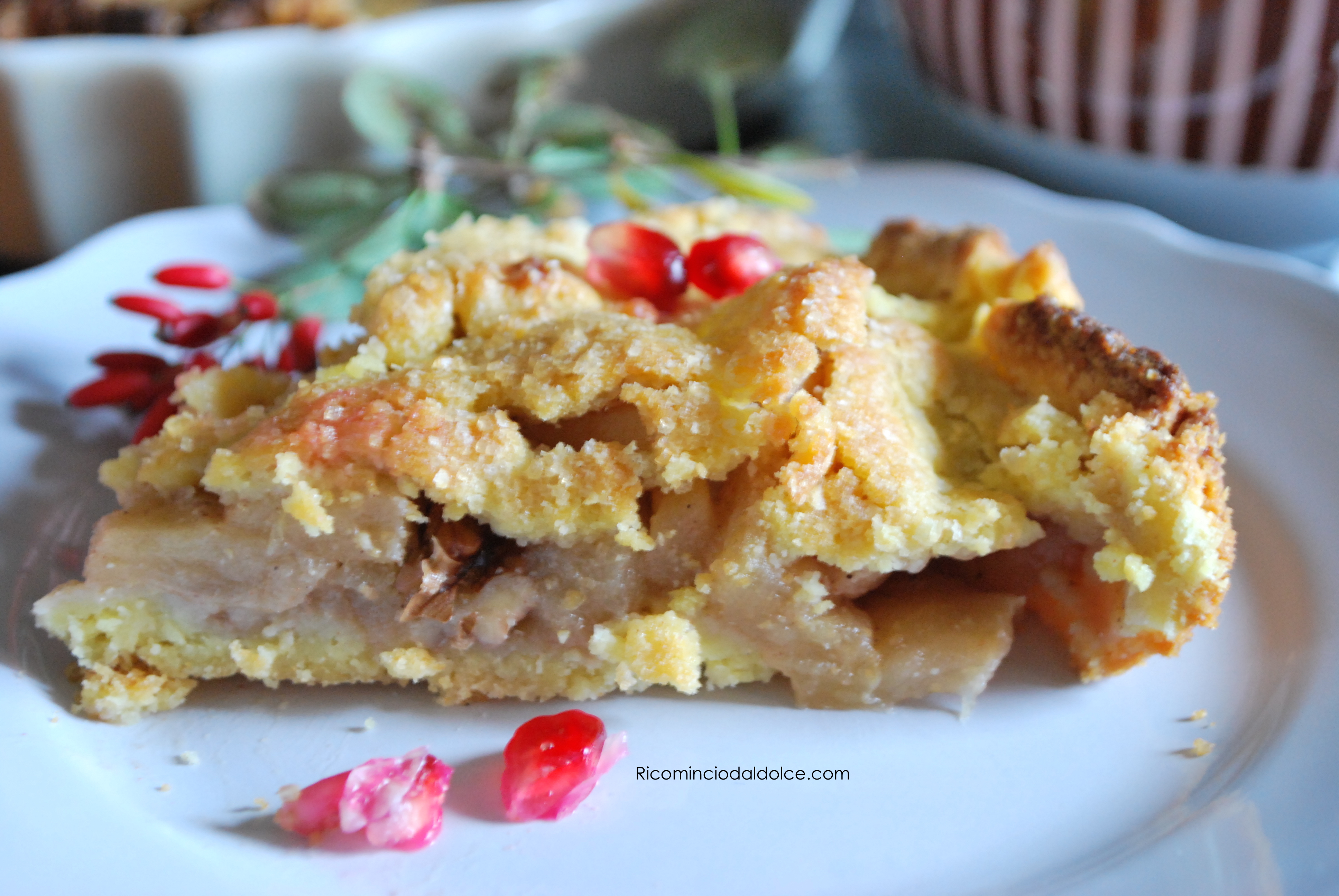 Ormai si respira aria di Natale in ogni angolo di casa e di strada….dopo i biscottini speziati che ho usato per decorare il calendario dell’avvento, vi propongo un’altra ricetta ideale per queste giornate fredde e frenetiche. Ha inizio infatti, la corsa ai regali di Natale, io in realtà mi riduco sempre all’ultimo minuto ma, mi piace comunque iniziare a passeggiare per le strade addobbate, per guardarmi intorno; e cosa c’è di meglio di un bel tè caldo e una fetta di Apple Pie per riscaldarsi di ritorno dalle passeggiate di shopping con le amiche ??? … NIENTE quindi prepariamola subito così porterete offrirla anche voi per il vostro tè del pomeriggio 😉