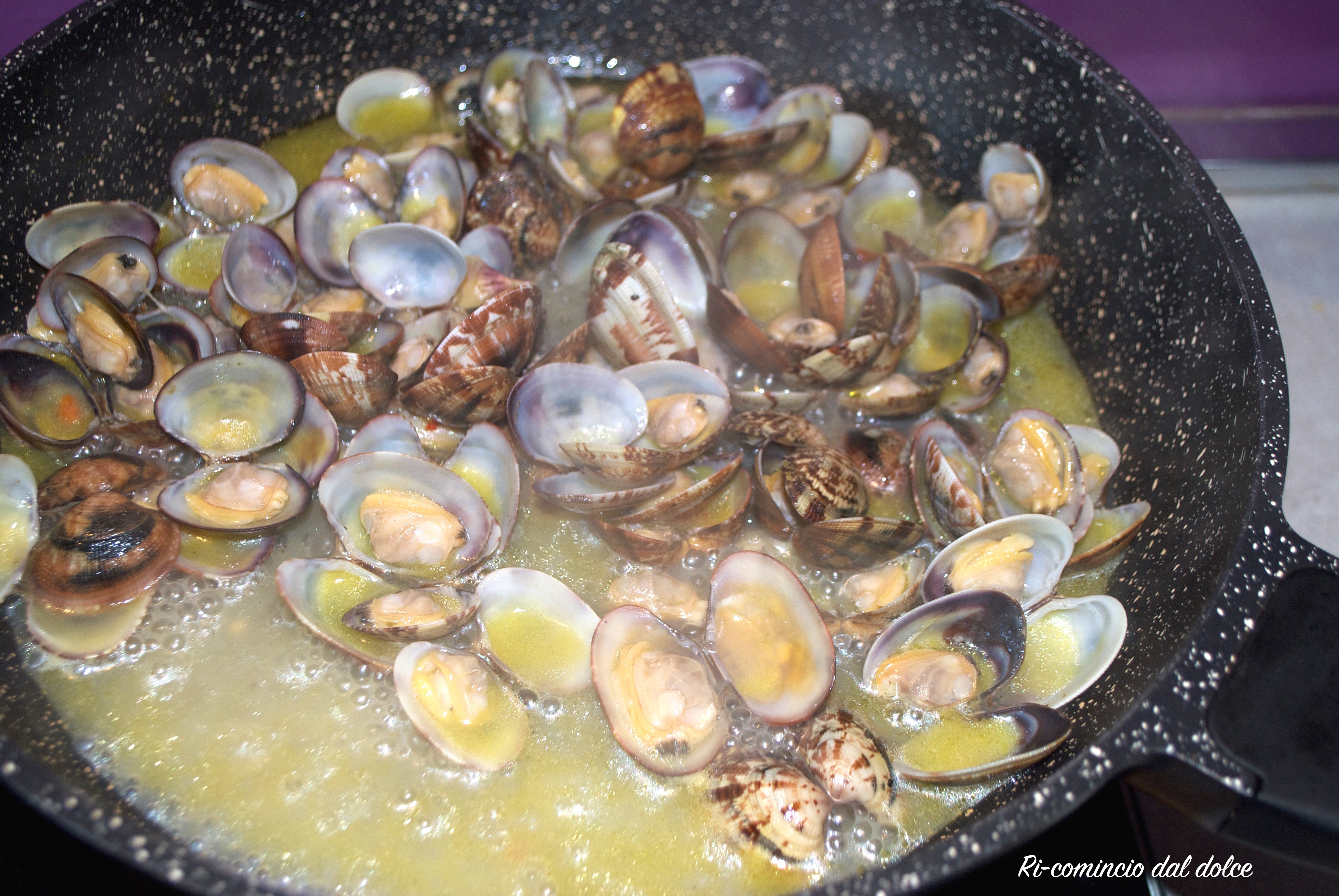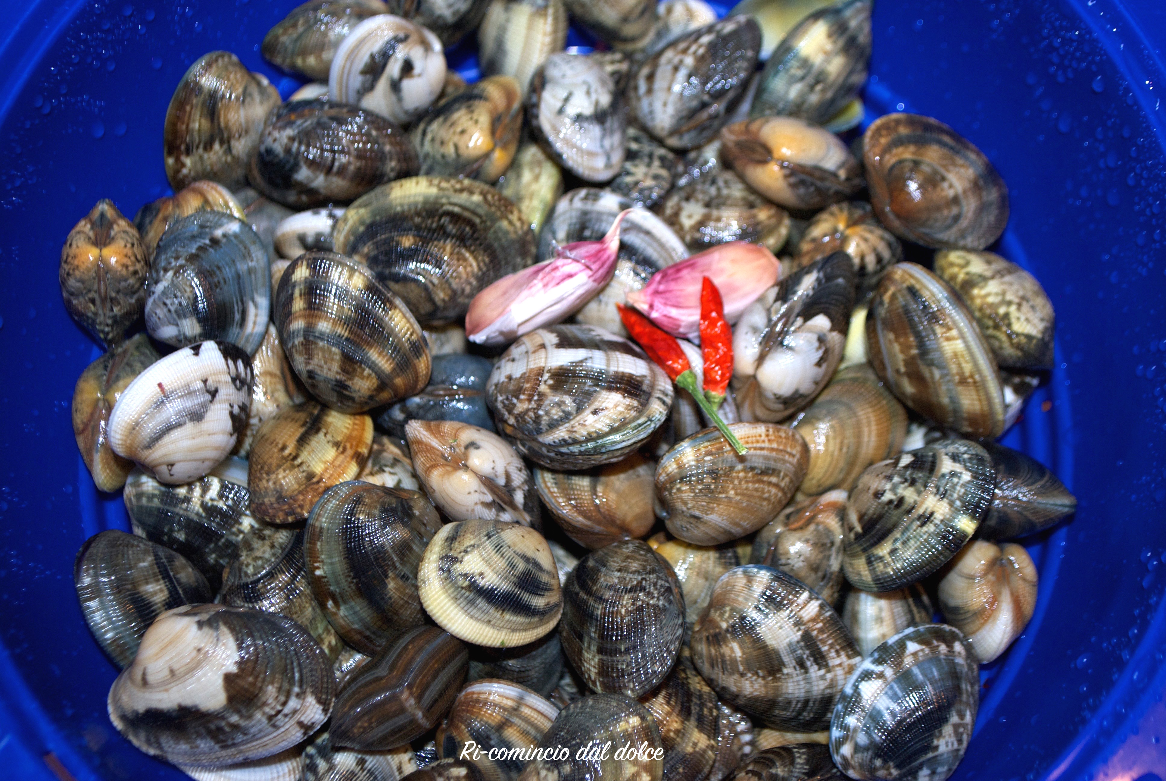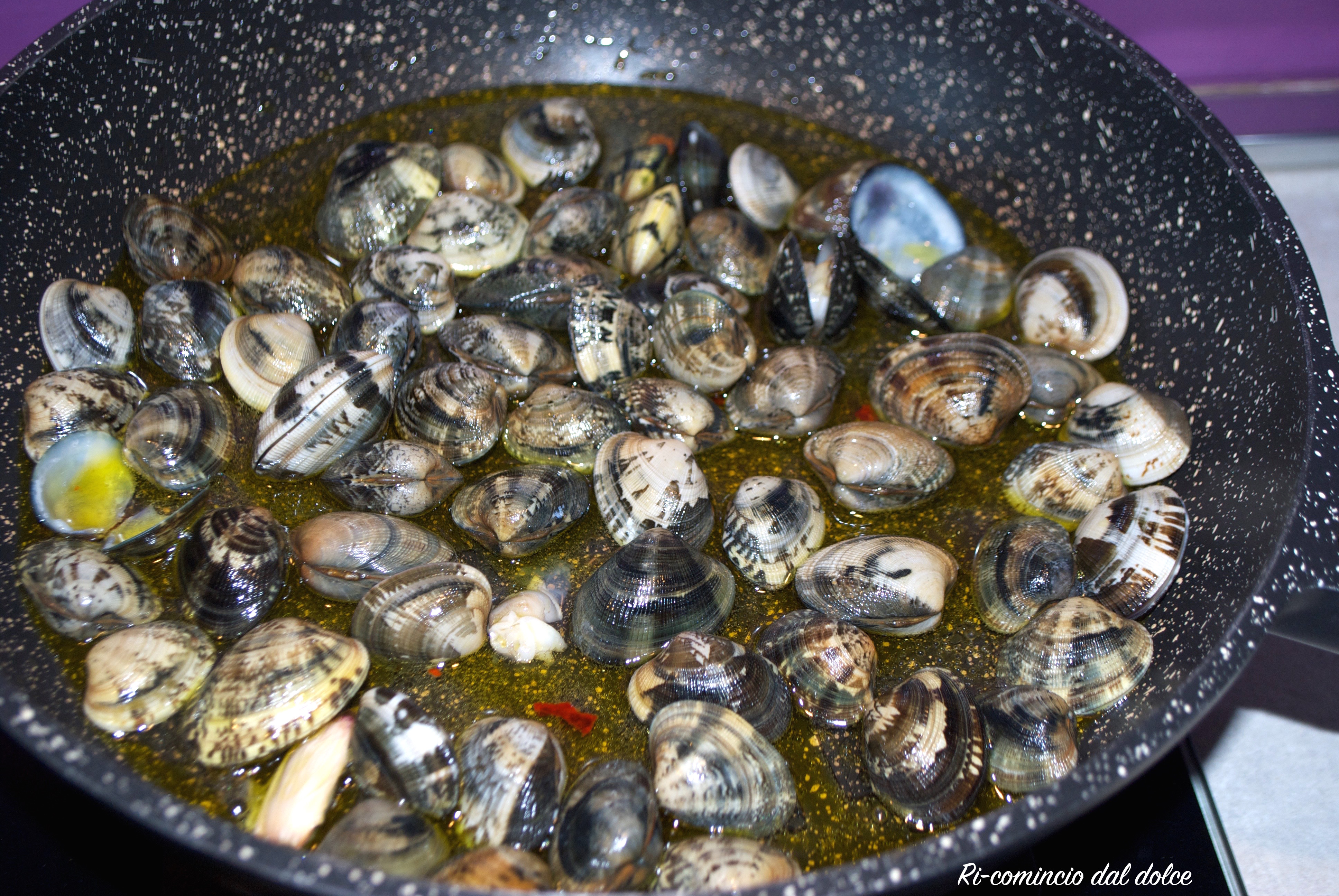Per prima cosa mettete a spurgare le vongole in acqua e sale grosso per un’oretta circa, in modo da far espellere tutta la sabbia contenuta nelle vongole. Una volta spurgate sciacquatele sotto l’acqua corrente.