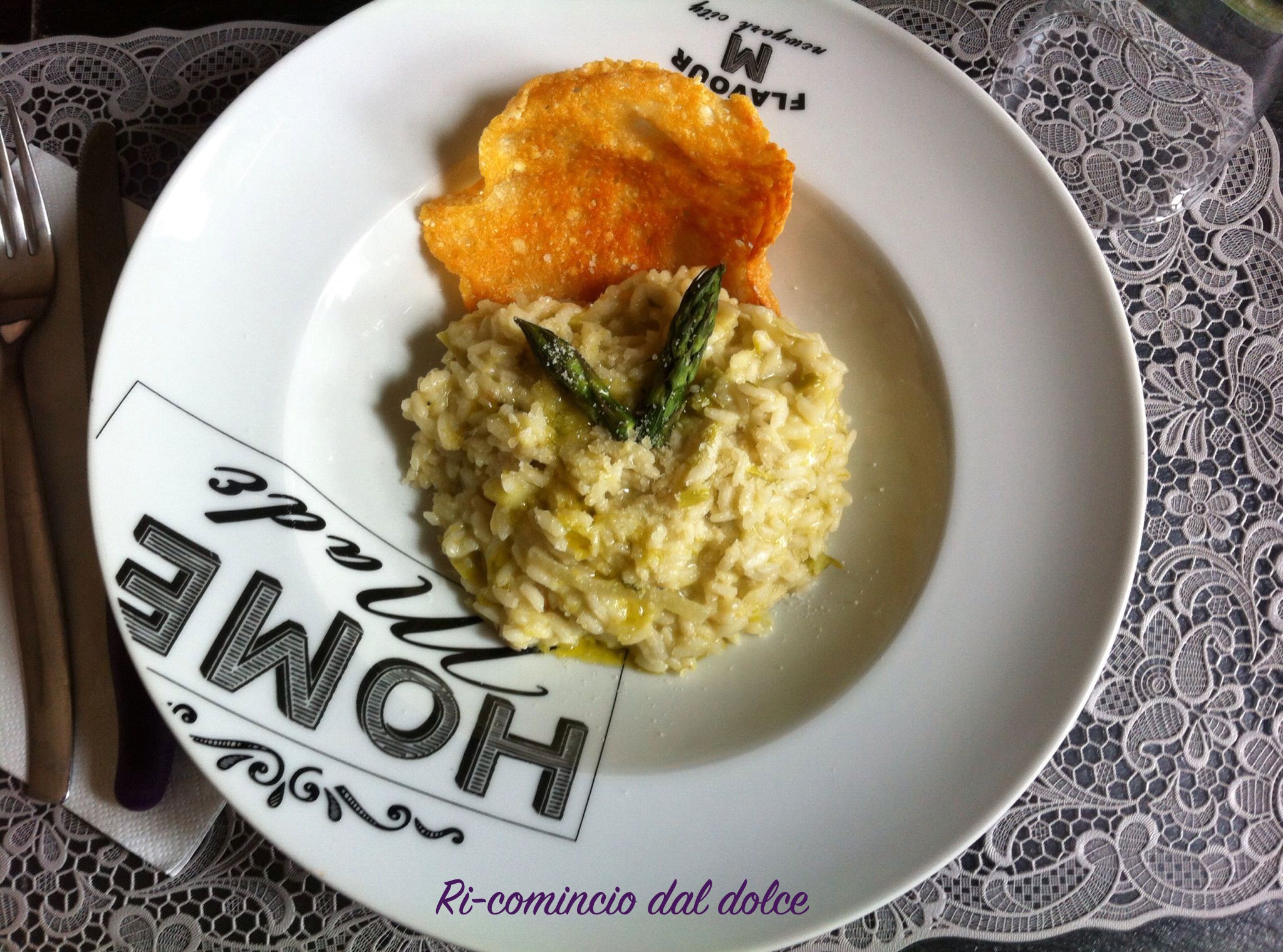E’ tempo di asparagi e sono tanti gli usi che se ne possono fare in cucina. Il risotto con gli asparagi è un classico primo di stagione, gustoso e leggero. La ricetta che vi propongo è una versione un po’ più leggera, non userò infatti il burro né per il soffritto né per mantecare, ma solo olio evo. Ho letto da qualche parte un po’ di tempo fa, che questo ortaggio era consumato già dagli egizi e dai romani che nel 200 a.c possedevano manuali per la sua coltivazione. Era così amato dai romani che avevano navi apposite per andarli a raccogliere. Noi per fortuna non dobbiamo imbarcarci su alcuna nave per averlo, ma basta recarci in un supermercato o dal nostro fruttivendolo di fiducia…quindi mettiamoci all’opera.