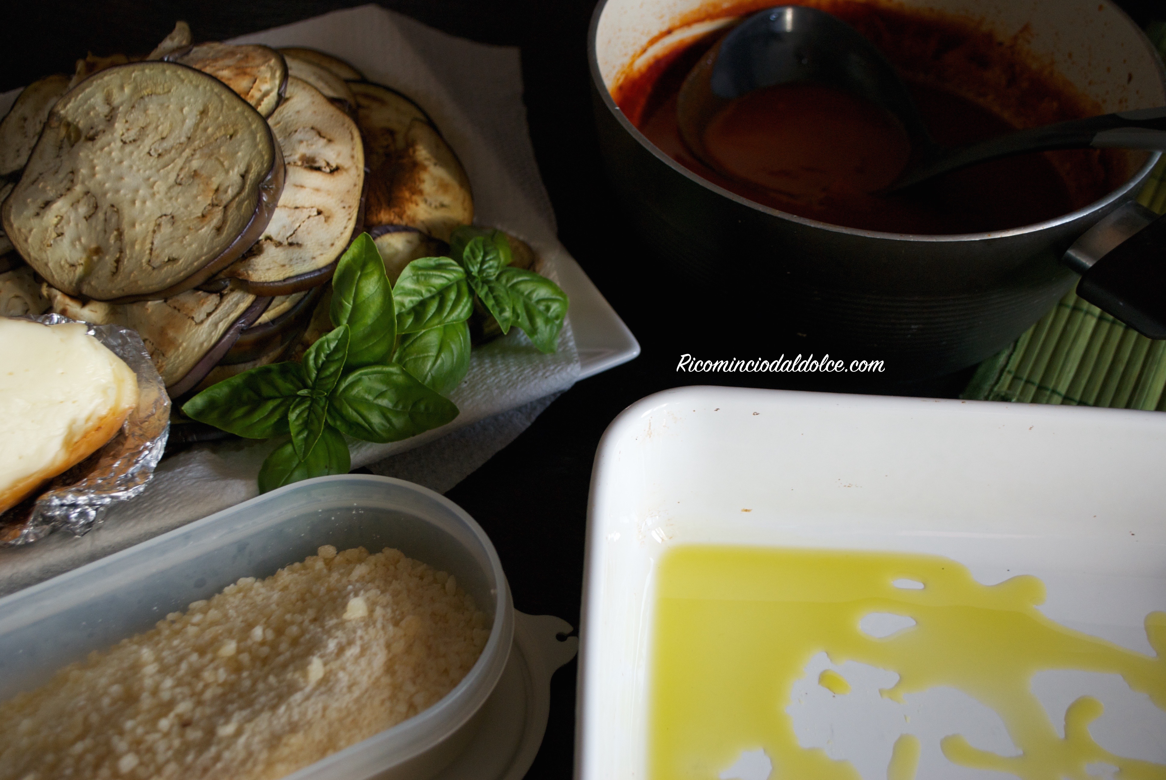 Mentre aspetti di terminare la cottura delle melanzane, prepara un semplice sugo, mettendo in una padella a soffriggere la cipolla con un filo d’olio, aggiungi poi la passata aggiusta di sale e lascia cuocere il sugo. Verso la fine aggiungi al sughero qualche foglia di basilico. Terminata la cottura delle melanzane e del sugo sei pronto per comporre la parmigiana.